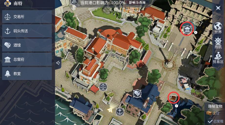 黎明之海的南特隐秘宝物一共有2个,大概位置查看下面地图显示。