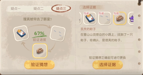 三个证据分别是:索菲亚的线索、雪山上的脚印、丢失的鞋子。