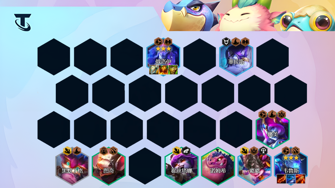推荐理由:s7版本最初的最强上分阵容,后来由于版本的不断更迭,强度一度下降,现在又一次回到了大众的视野之中,这是3322体系的阵容延续。