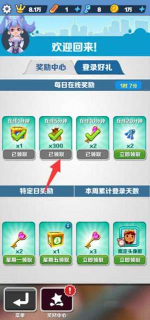 2、每天在线时间达到一定时长后,就可以免费领取金币奖励了。