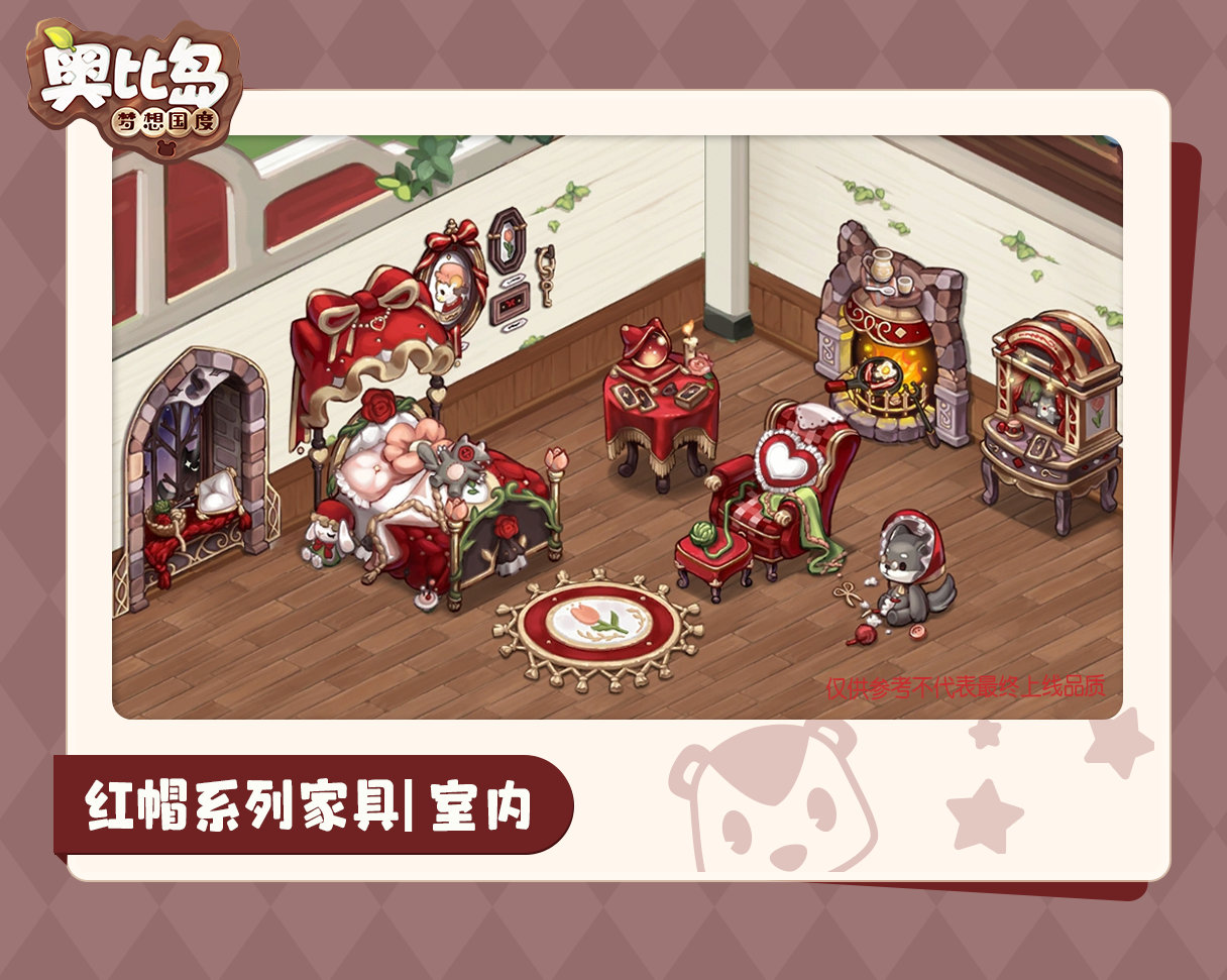 壁炉中的火苗摇曳,温暖了整个小屋。装满毛线球的竹篮和精心钩织的毛衣充斥着外婆温暖的爱。听说在红帽柔软的大床上睡去就能进入童话般的梦境。