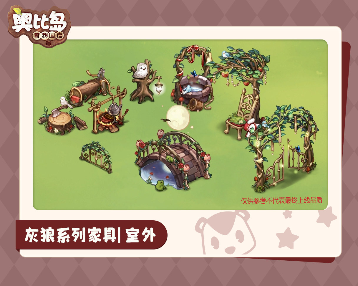 与红帽家具的“温馨感”不同的是,灰狼家具充满了来自森林的“野生感”;跨越月球的拱桥,架着斧头的树桩,燃烧着的水壶,还有深不见底的水井,在家园就可以体验户外露营的悠闲。