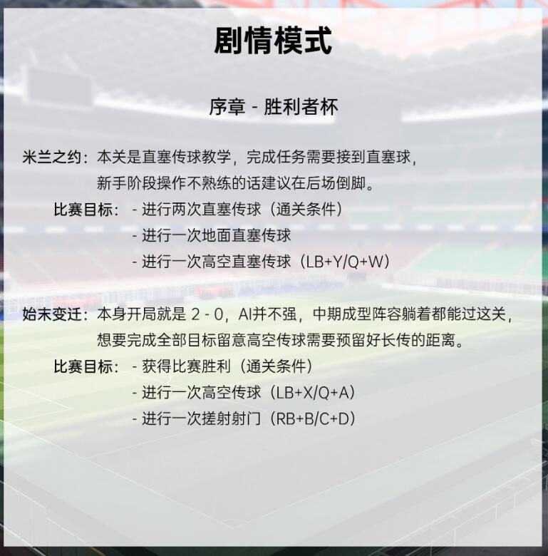 绿茵信仰在今天9月21日正式开启全平台公测了,相信很多热爱足球游戏的玩家都已经下载好等待游戏开服了,游戏里除了pvp模式之外,还有剧情模式,剧情模式用来解锁一些功能和等级,那么具体有哪些剧情关卡呢?iefans小编今天就为大家详细介绍一下。