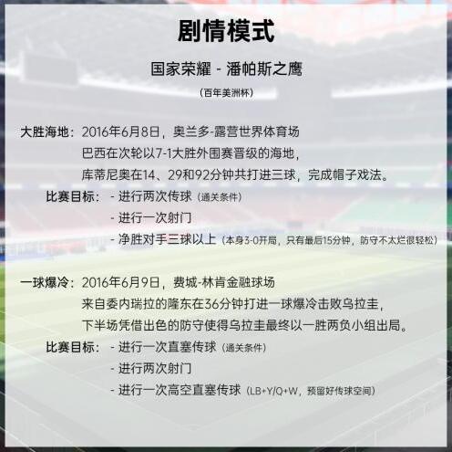本章以2016年百年美洲杯为故事背景,选取了本届杯赛的六场经典比赛,承接序章进行补充教学。