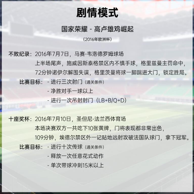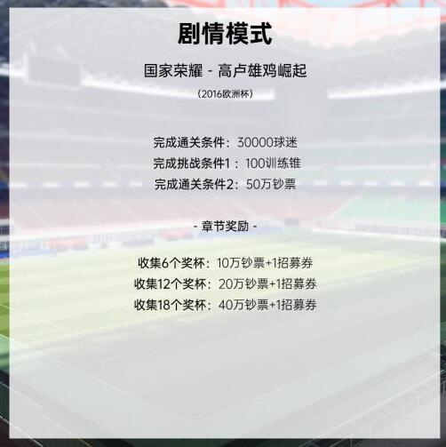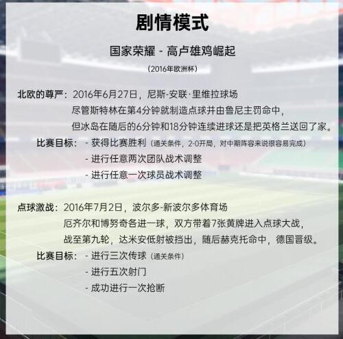 本章以法国欧洲杯为故事背景,帮助玩家熟悉进阶操作,整体难度相对适中。
