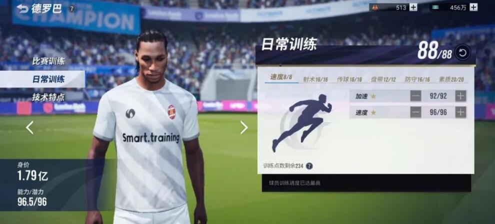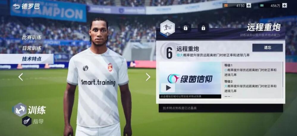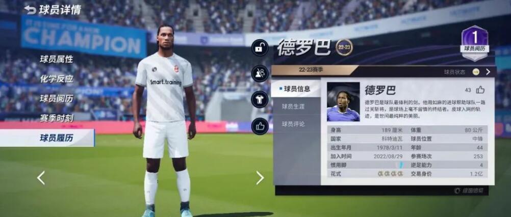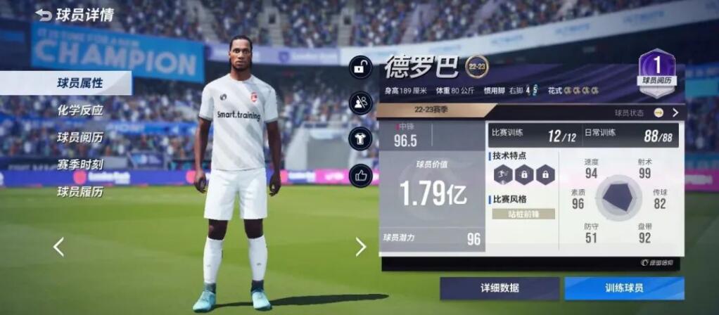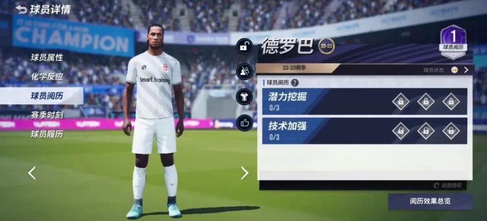 从阵容或者球员管理界面,均可进入球员详情界面查看球员相关信息,通过训练球员进行球员培养(本文采用图片素材为3日前共研服球员信息,提前为没有参与共研服测试玩家展示封面任务德罗巴)。