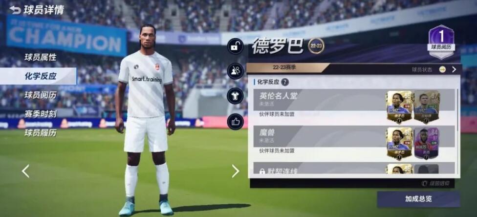 4.同位置球员激活同比赛训练等级化学反应后,带来的球员属性加成一致;