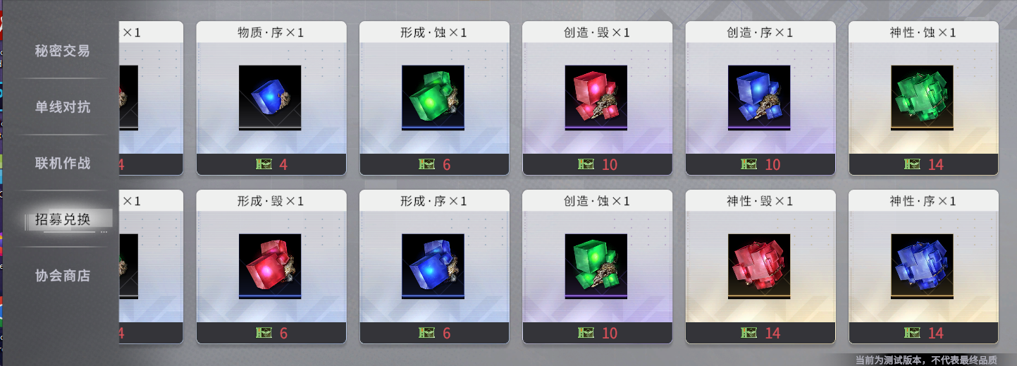 在构成幻景中达到一定挑战条件可以获得对应的升格材料,挑战的难度越大,所获得的升格材料阶级越高。