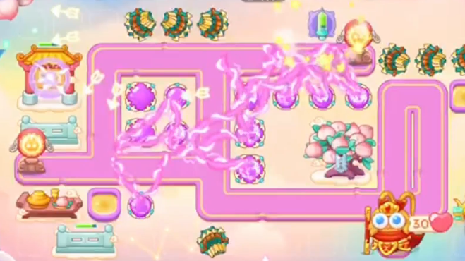 6、最后放置炮塔位置:中间全部放魔法球,两次多重箭,出口处放毒针和闪电炮。