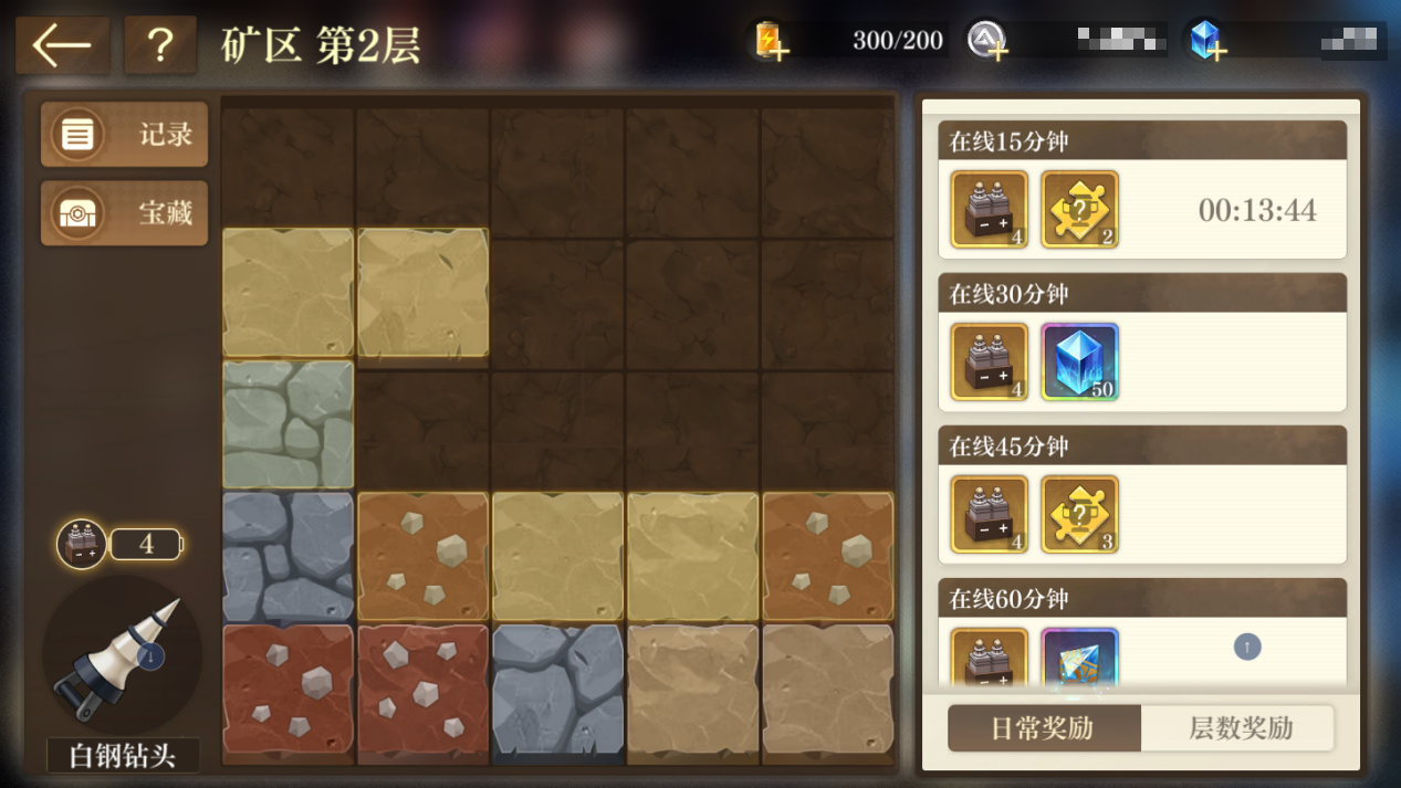 勘探系统:是第一章节过后就会开启的,刚开启之后系统会送我们一个钻头,但是要使用钻头需要电量才可以使用,对于电量的获取方式玩家可以通过每日保持在线,就会自动获取了。