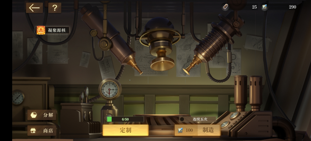 精工室:每日可免费产出源核,同时制造源武、分解源武均在精工室,随机制造五十次后可免费定制源武,对,你没看错,“非洲人”的保底机制。