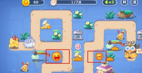 3、第二波左边加一个满级太阳花,右边先把原来有的太阳花升满级,在加一个太阳花升一级。