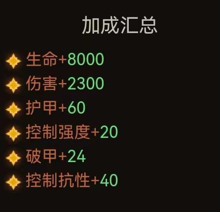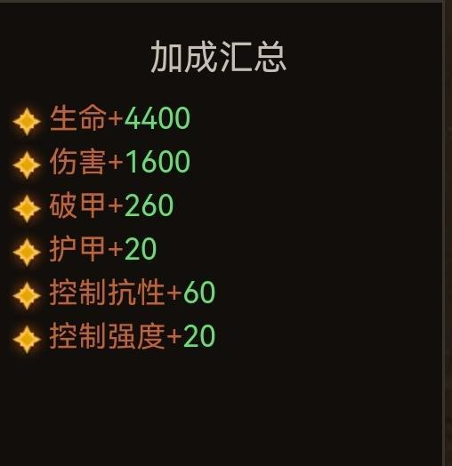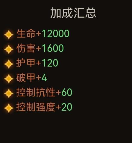 在不败之地中获得500点永久伤害属性,永久20破甲属性,永久4000生命值和40控制抗性,通过秘技获得免控、受控缩减和生机效果。