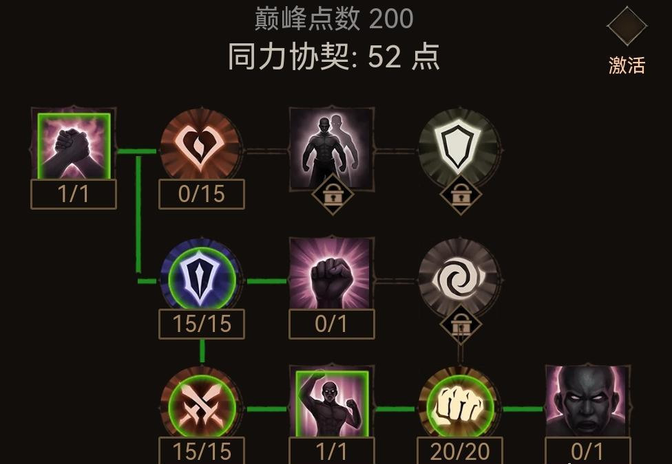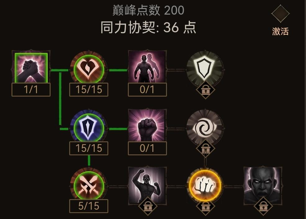 在同力协契中获得300点永久伤害属性,永久60点控制抗性属性和80点破甲,通过秘技获得相辅相成和斗志激发效果。
