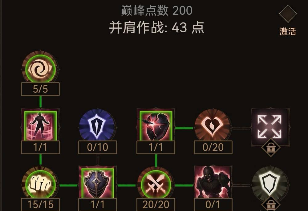在并肩作战中获得400点永久伤害属性,永久60点破甲属性和控制强度20点,通过秘技可以获得技能增伤、免伤提高效果。