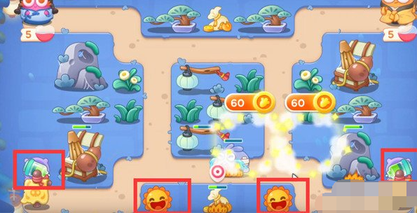 6、然后我们看到果冻兔出现,及时点掉被覆盖的炮塔,恢复火力。