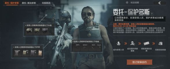成为多斯的安保人员后,先锋们可以使用随机刷新的装备进行保护行动。装备每日05:00会进行刷新。(注意:多斯发放的随机装备,只有在多斯成功撤离后才能被安保人员带出;若多斯撤离失败,即便安保人员成功撤离,随机装备也会被回收!)安保人员需在局内与其他五名安保人员一起执行任务,分阶段护送多斯进行辗转驻守。若多斯撤离成功,则解锁多个额外撤离点;若多斯撤离失败,仅开放条件撤离点。