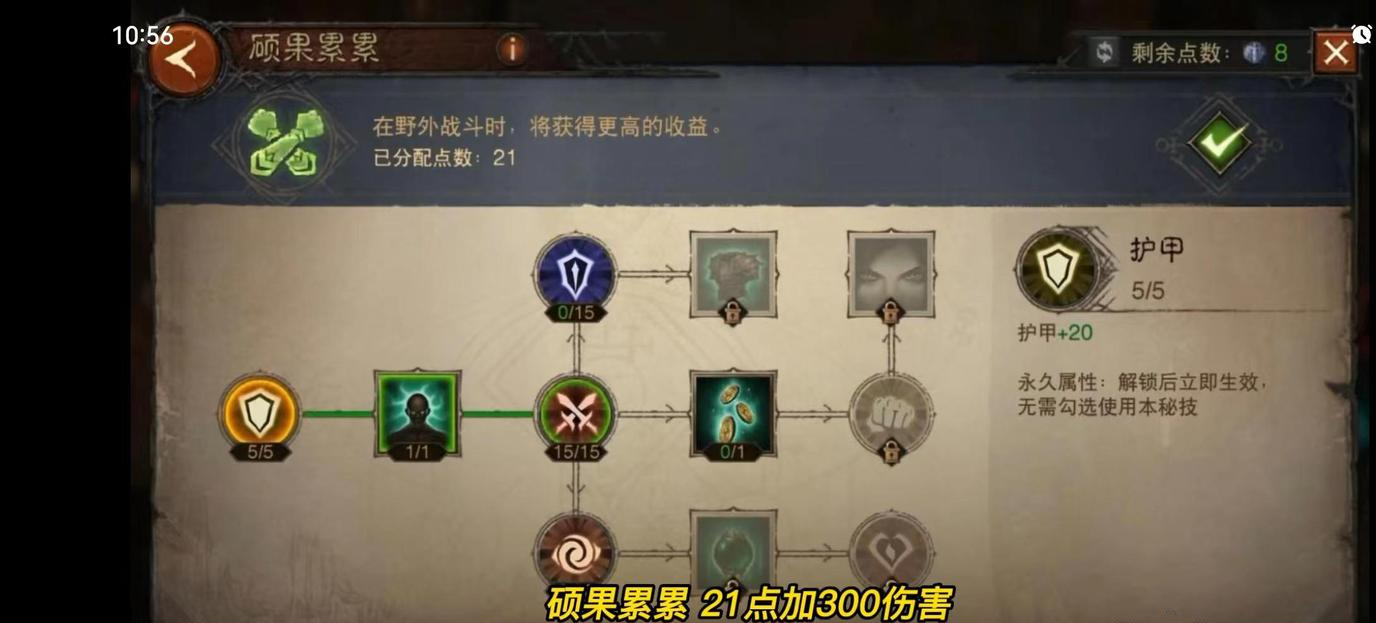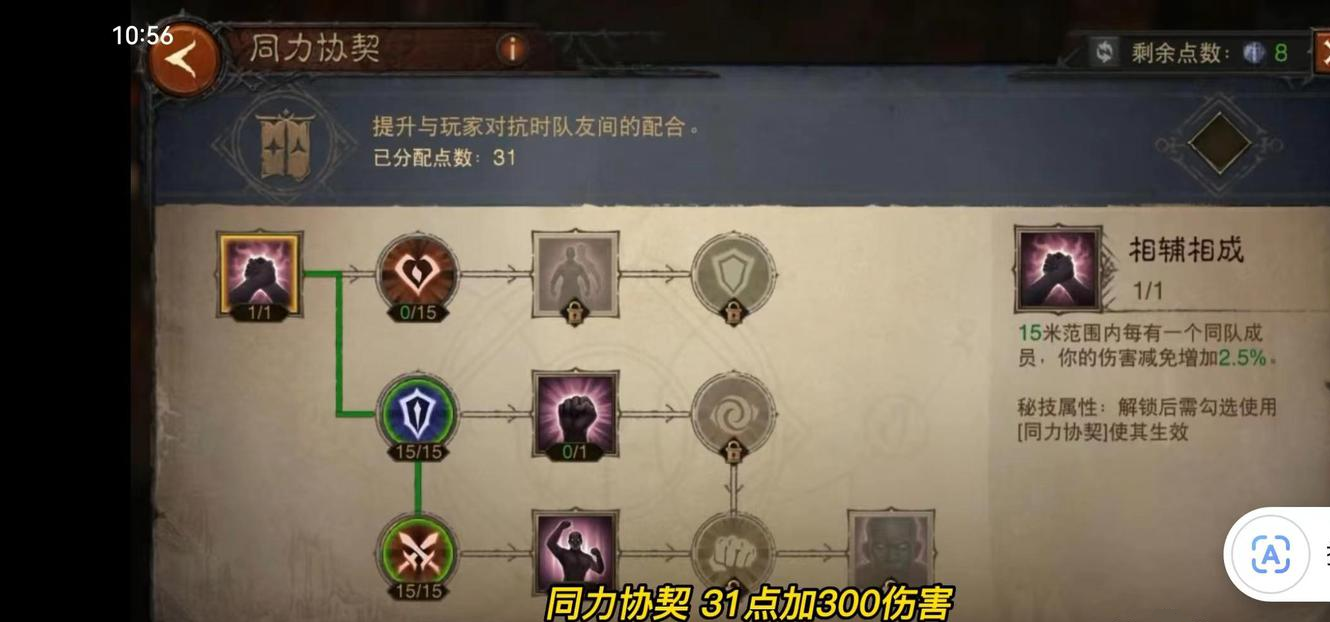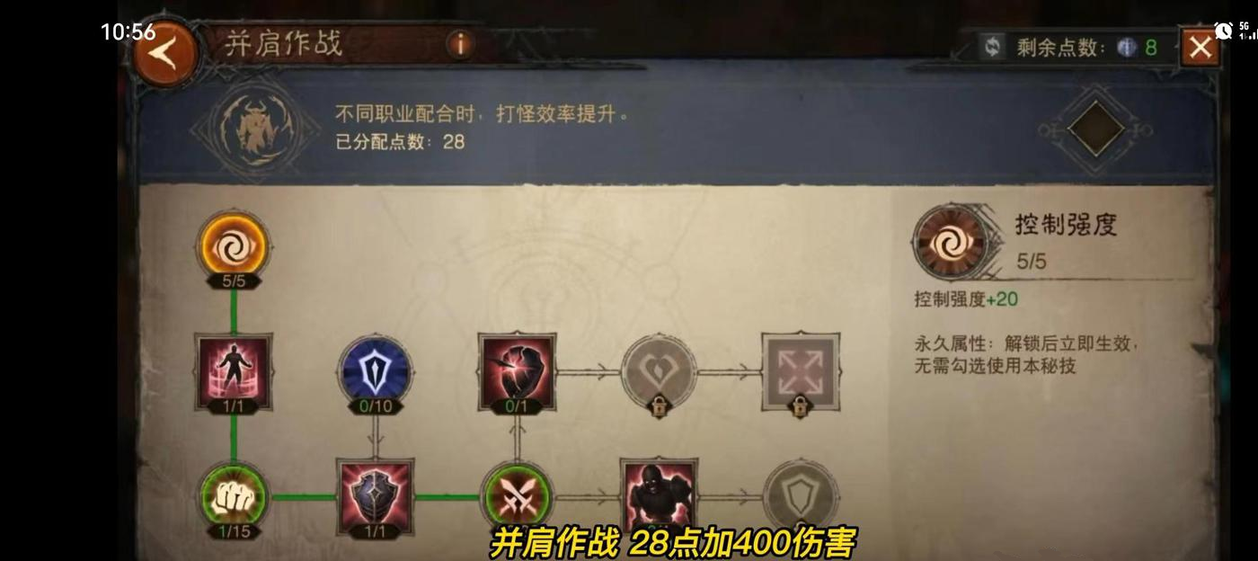 6、并肩作战28点为我们增加400伤害。并肩作战左下角的破甲不需要全部点亮,只需要点1点就可以继续往下点了。