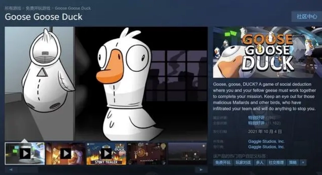 第一步:玩家们需要到steam商店中搜索goose goose duck,找到对应的游戏进入详情界面。