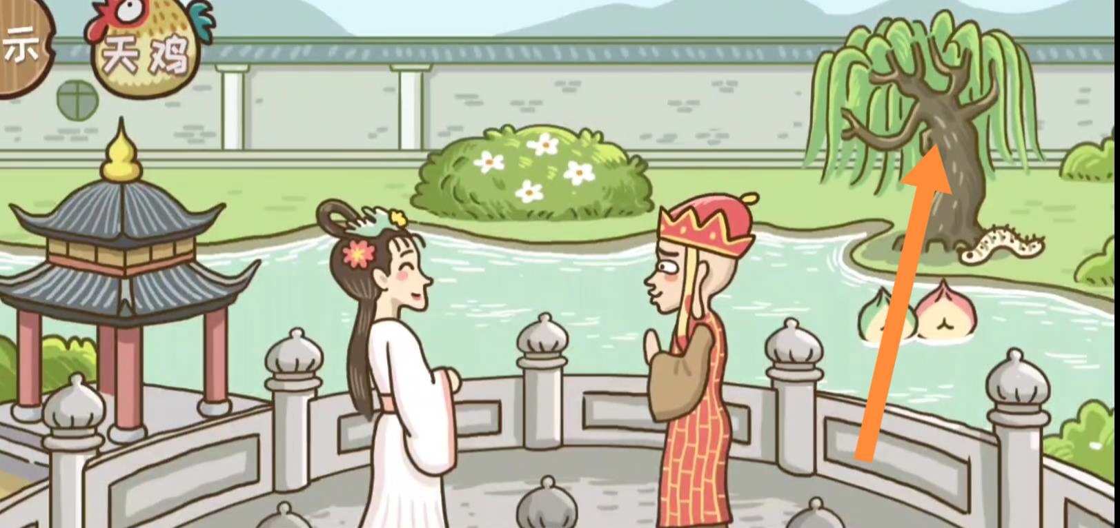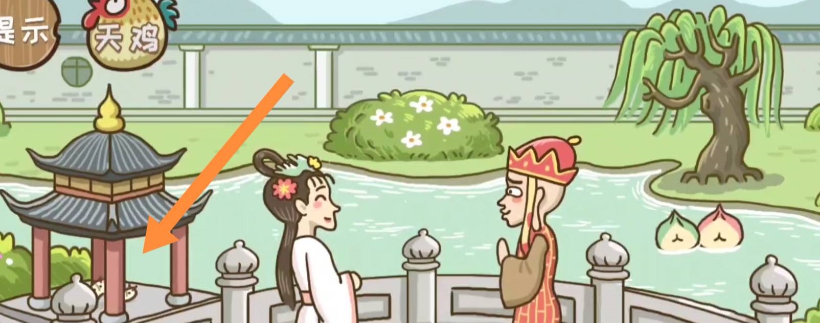 1、进入25关,点击右边的树,会掉下来一条毛毛虫,玩家需要把虫子拖到左边的亭子里,图片如下: