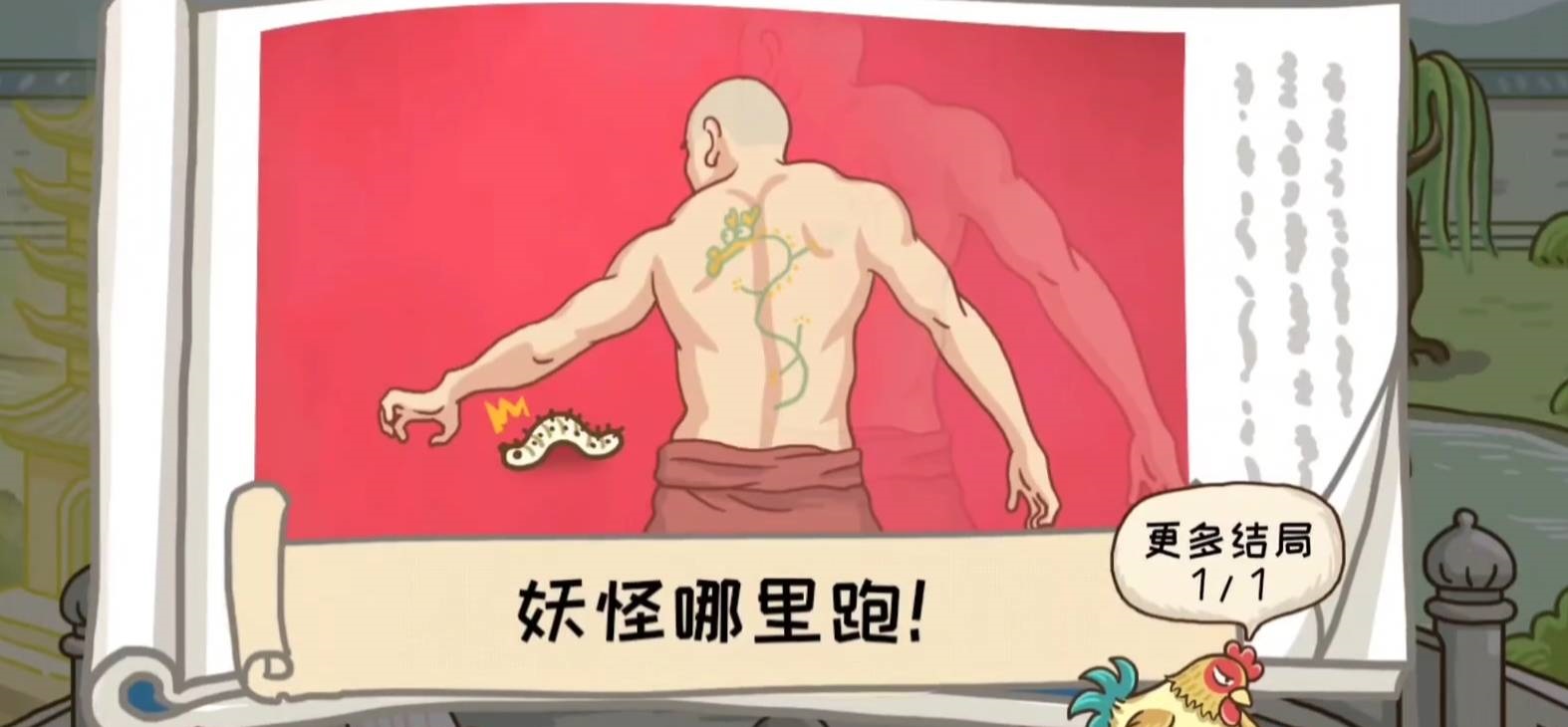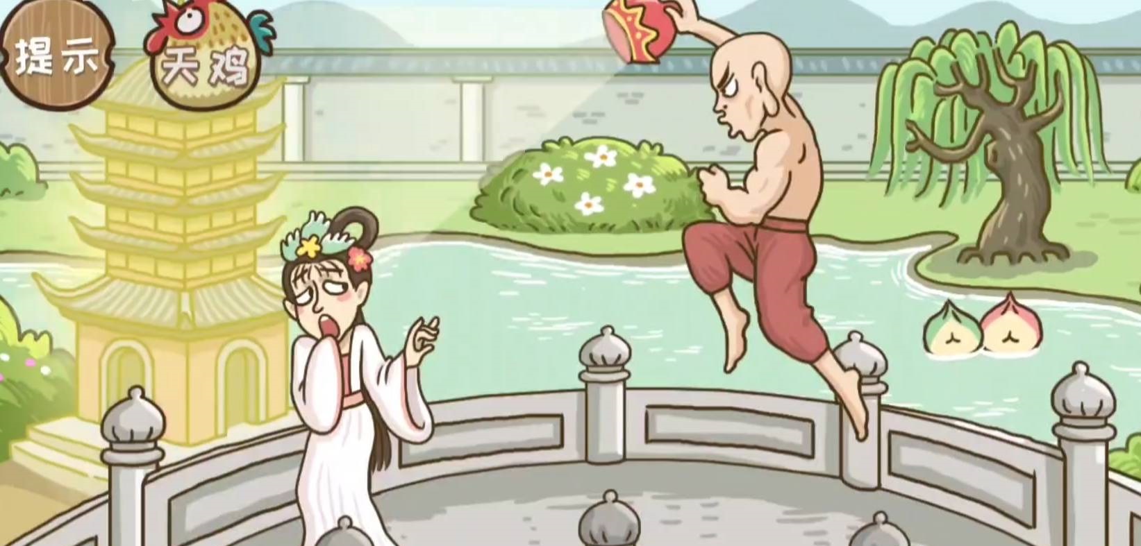 2、按住亭子上的葫芦往上拖,然后亭子就可以变成雷峰塔,下一秒唐僧就会变成法海,将虫子收掉,破灭国王幻想,顺利通关,图片如下: