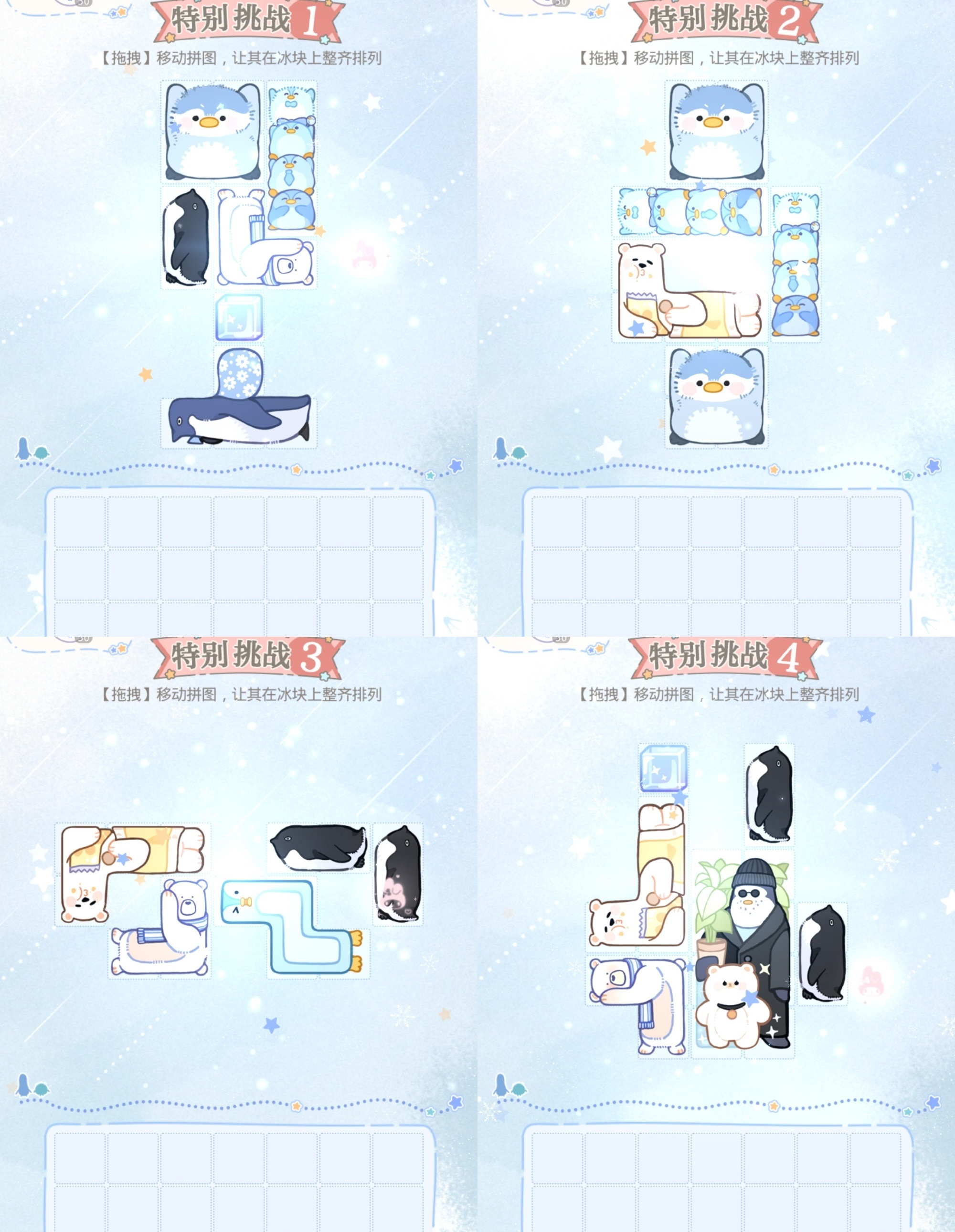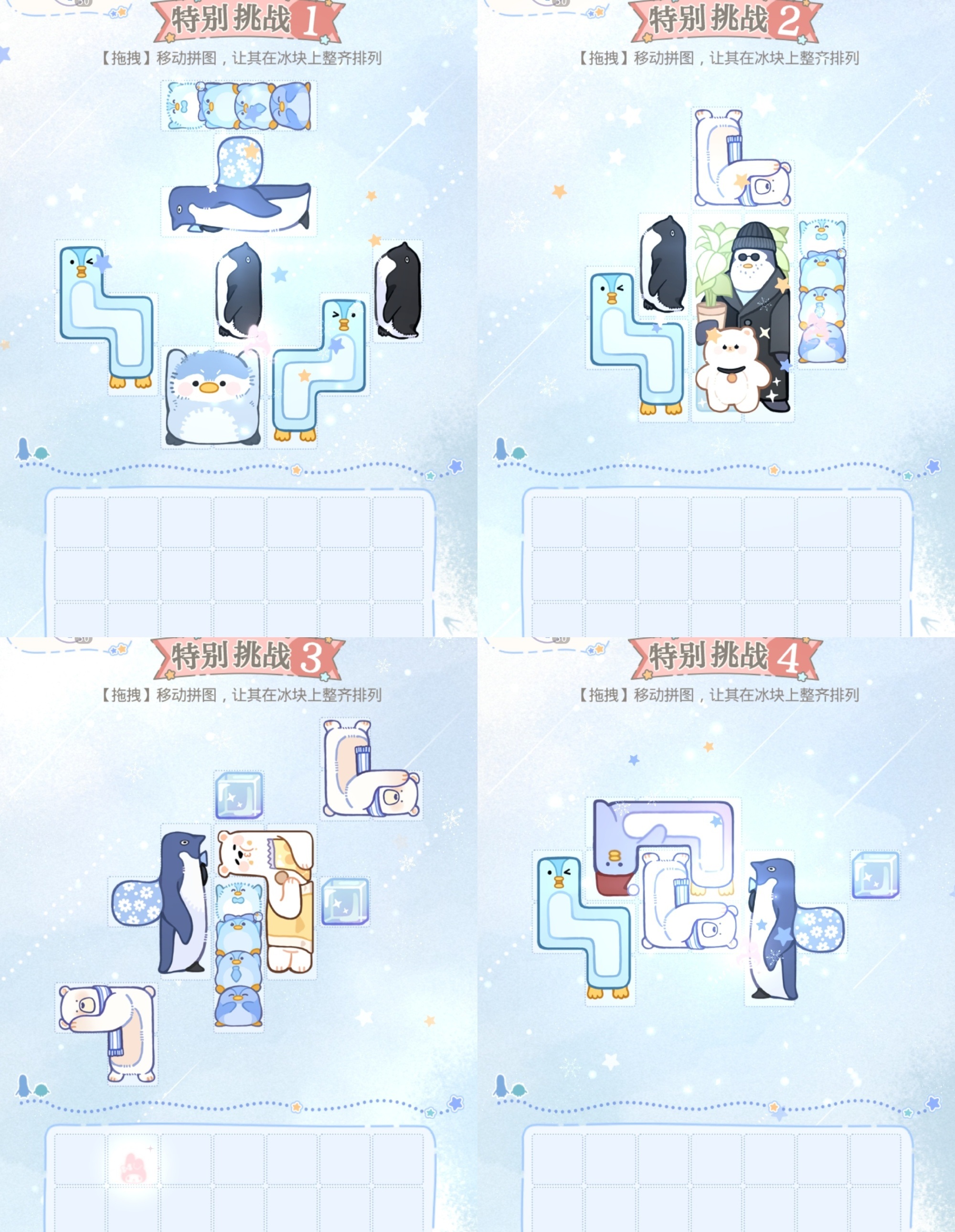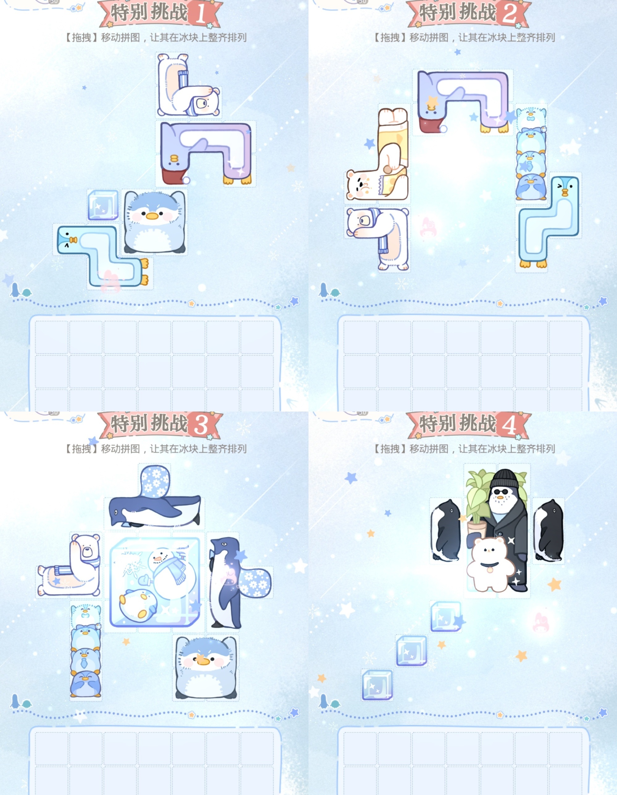 冰原拼拼乐特别挑战在活动的左下角,每个男主有4个关卡,完成后有50冰晶糖果,四个关卡加起来就是200冰晶糖果。