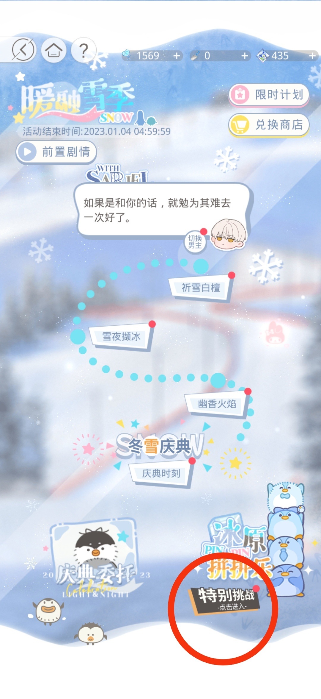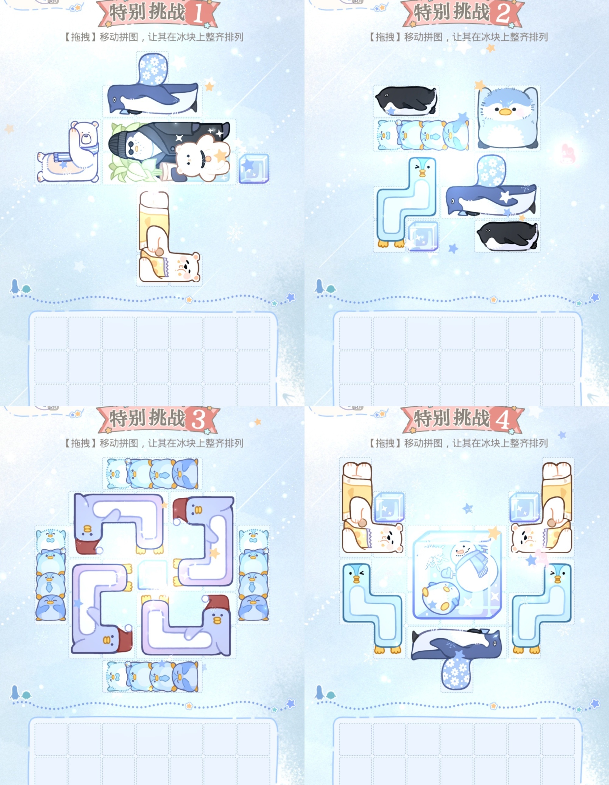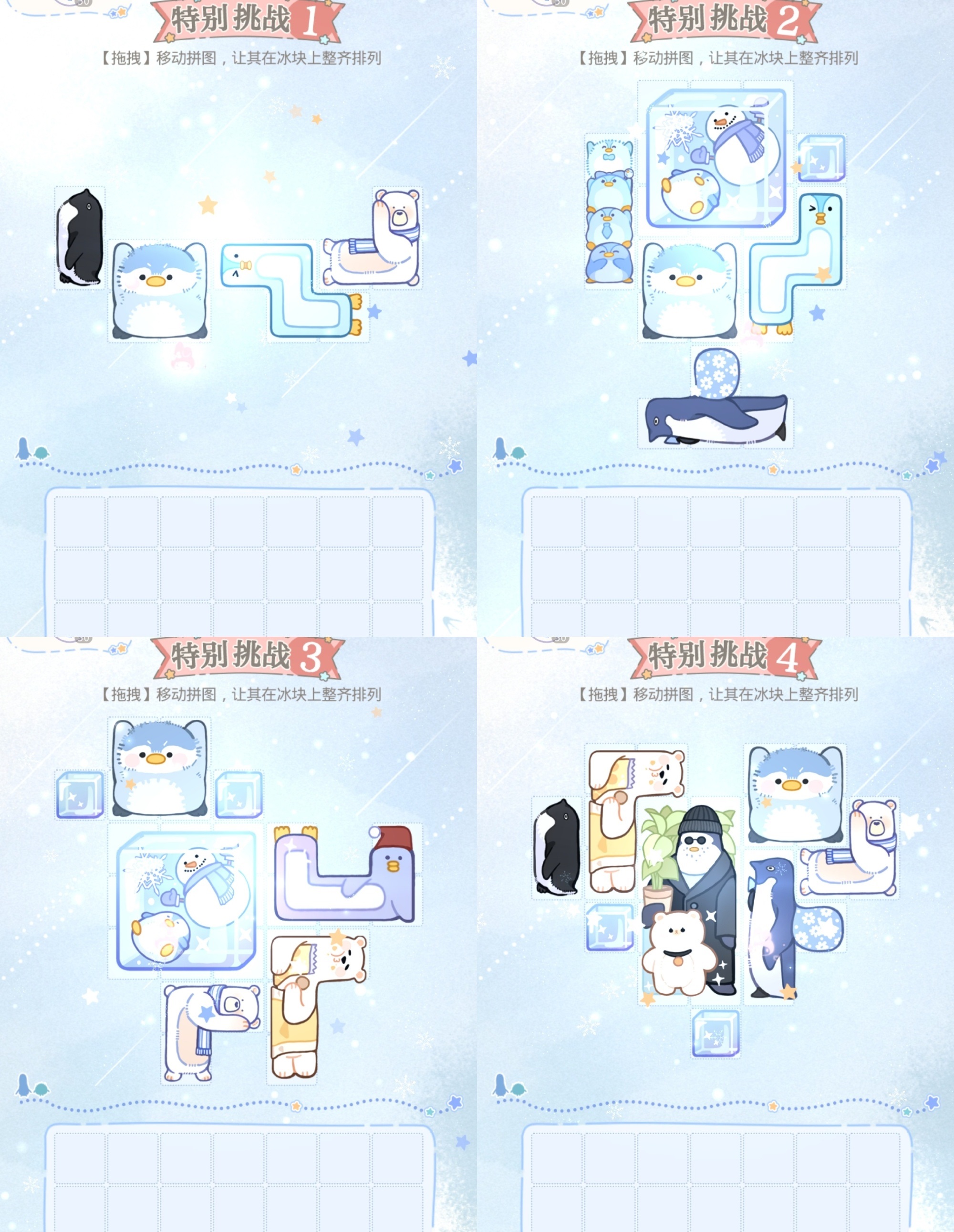 冰原拼拼乐特别挑战在活动的左下角,每个男主有4个关卡,完成后有50冰晶糖果,四个关卡加起来就是200冰晶糖果。