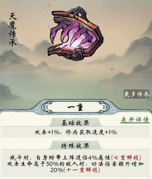 修真江湖2游戏当中共有6个门派传承,今天给大家介绍的是天魔传承,很多新手玩家想知道它有什么具体的效果,感兴趣的朋友一起来看看吧~