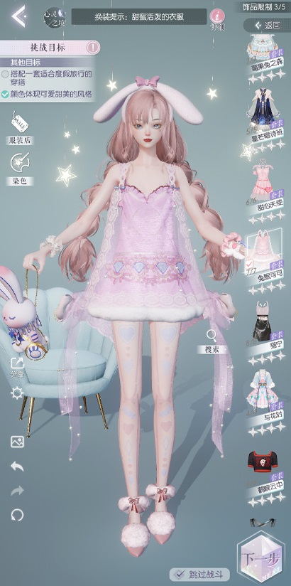 3、过关参考:兔眠可可套脱了所有饰品;服装少的可以一次带饰品,一次不带饰品,压线挑战两次。