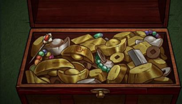 13、查看宝箱,点击右边黄金,将圆形金属片嵌入箱子。