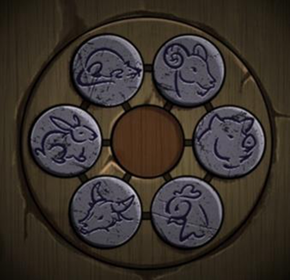 17、查看皮影戏幕布,得到鼠牛兔羊鸡猪的顺序。