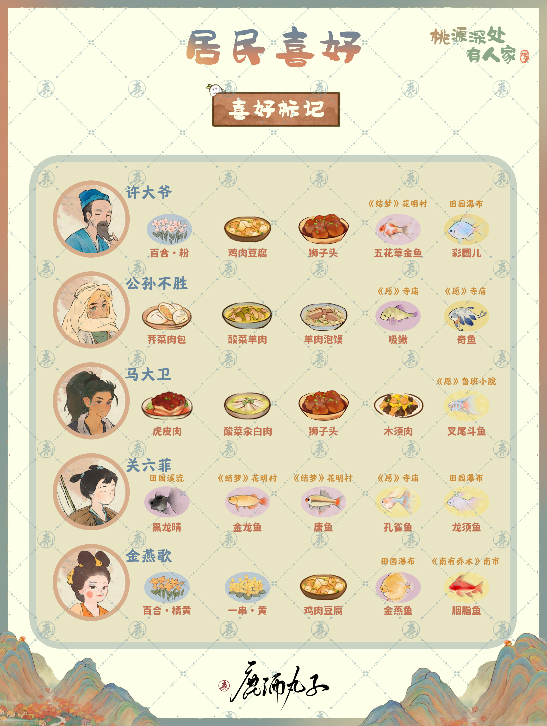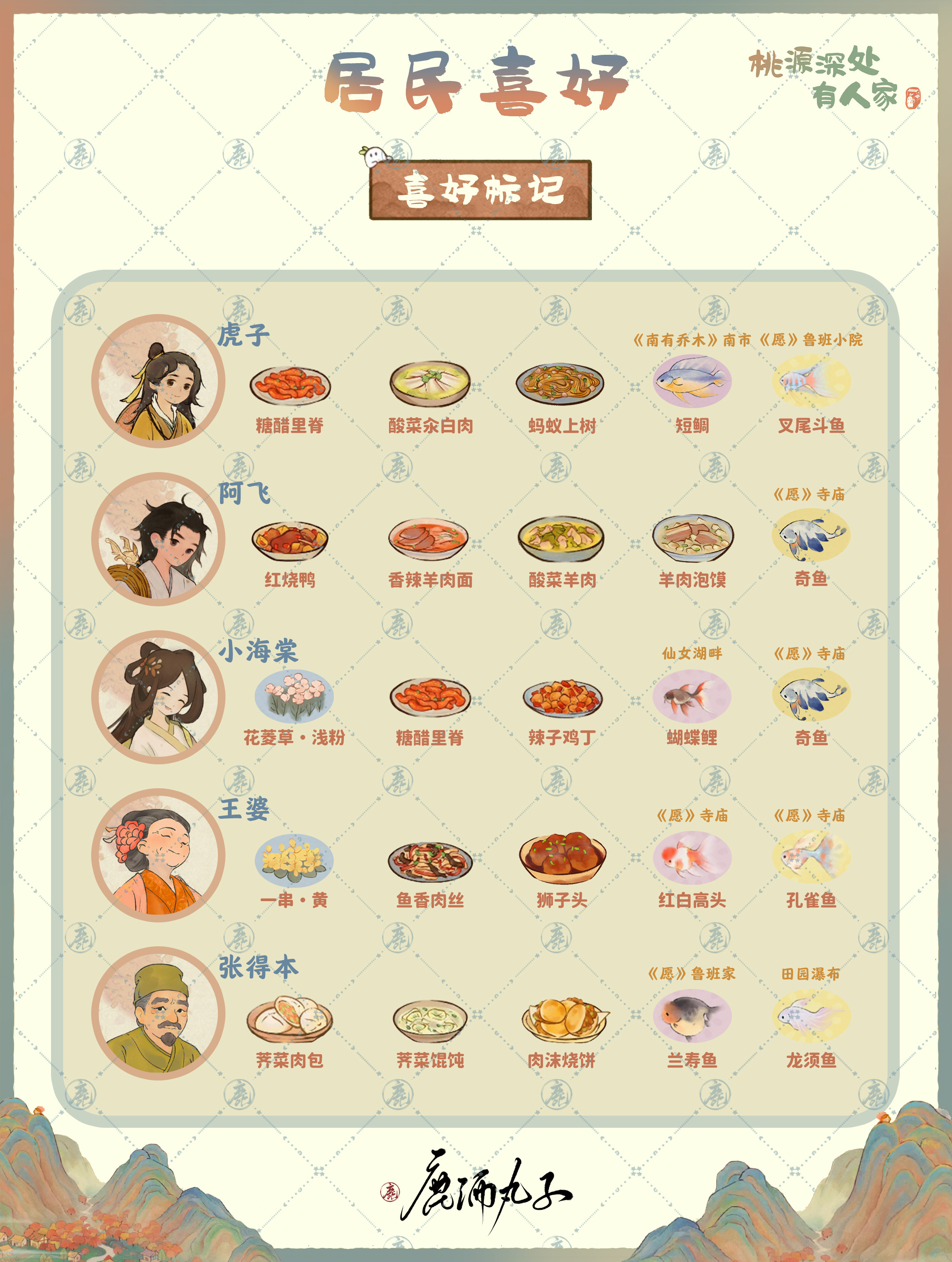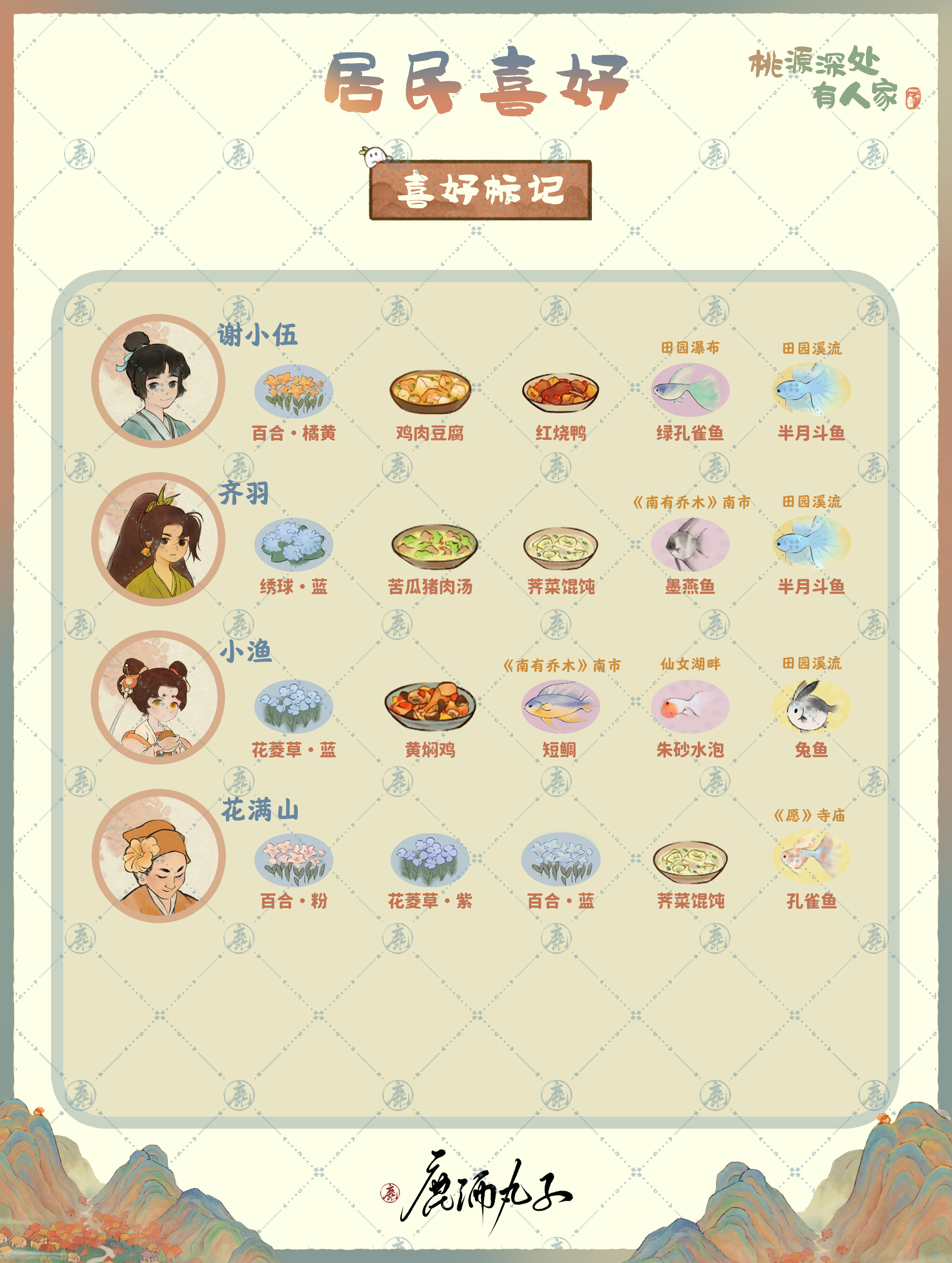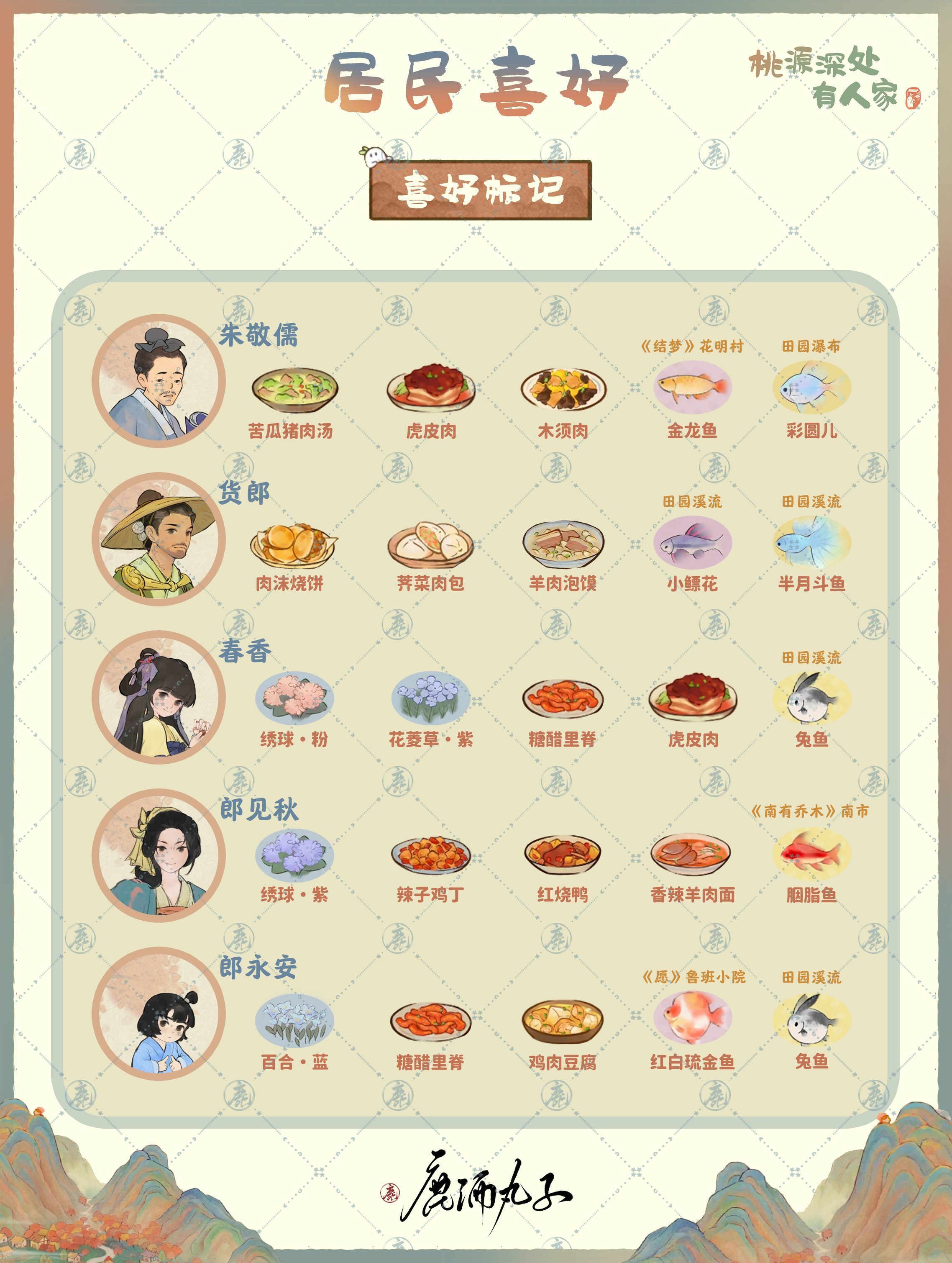 桃源深处有人家居民有不同的角色,而且大家生活在这里有着不同的体验,想要了解不同的居民有着哪些不同的喜好的话来看看小编给大家带来的攻略吧,汇总分享一目了然。