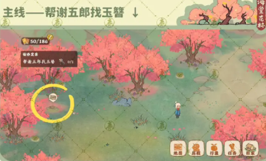 2、主线任务2:帮助谢五郎找到丢失的玉簪,在左边第二棵桃树下可以找到。