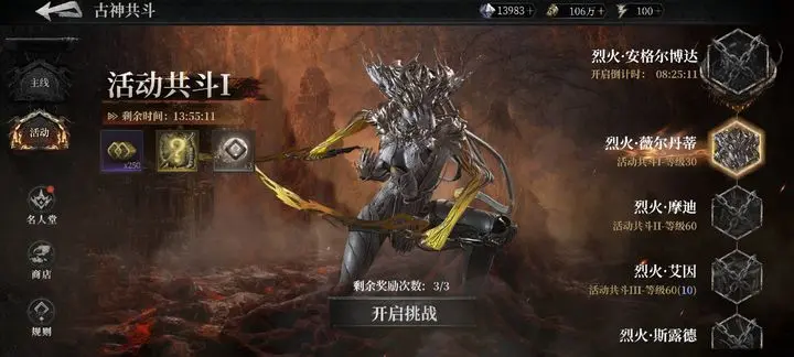除此之外,带有回血的魂核还有哈提和欧德姆,火抗的魂核有火焰巨人.史尔特尔和被诅咒者.提尔锋,如果用各种活动主线送的或通过其他方式获得的魂核,都可以带上。古煌1-3通关后解锁古神共斗和符文功能,其中活动共斗奖励比较丰厚,可以掉落符文、稀有装备等,符文可分为生命、防御、攻击、功能等,可以镶嵌在有符文槽的装备上,提供相应属性加成并提升魂力,需要注意不同类型的符文和符文槽形状不一样,镶嵌式要匹配。目前的角色等级只能打30级的活动共斗,建议把奖励次数打完,如果暂时打不过可以先推主线,待魂力提升后再打。