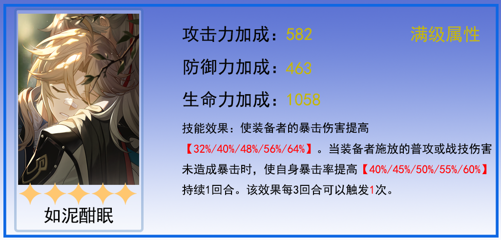 提高伤害和暴击,素裳速度123(基础速度107+天赋触发16),如果想要吃满暴击增益需要在遗器选择时堆点速度属性。