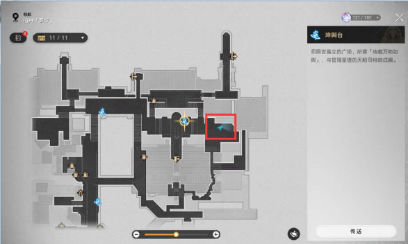 1、首先打开地图找到星槎海中枢,在其附近的坤舆台传送点传送。