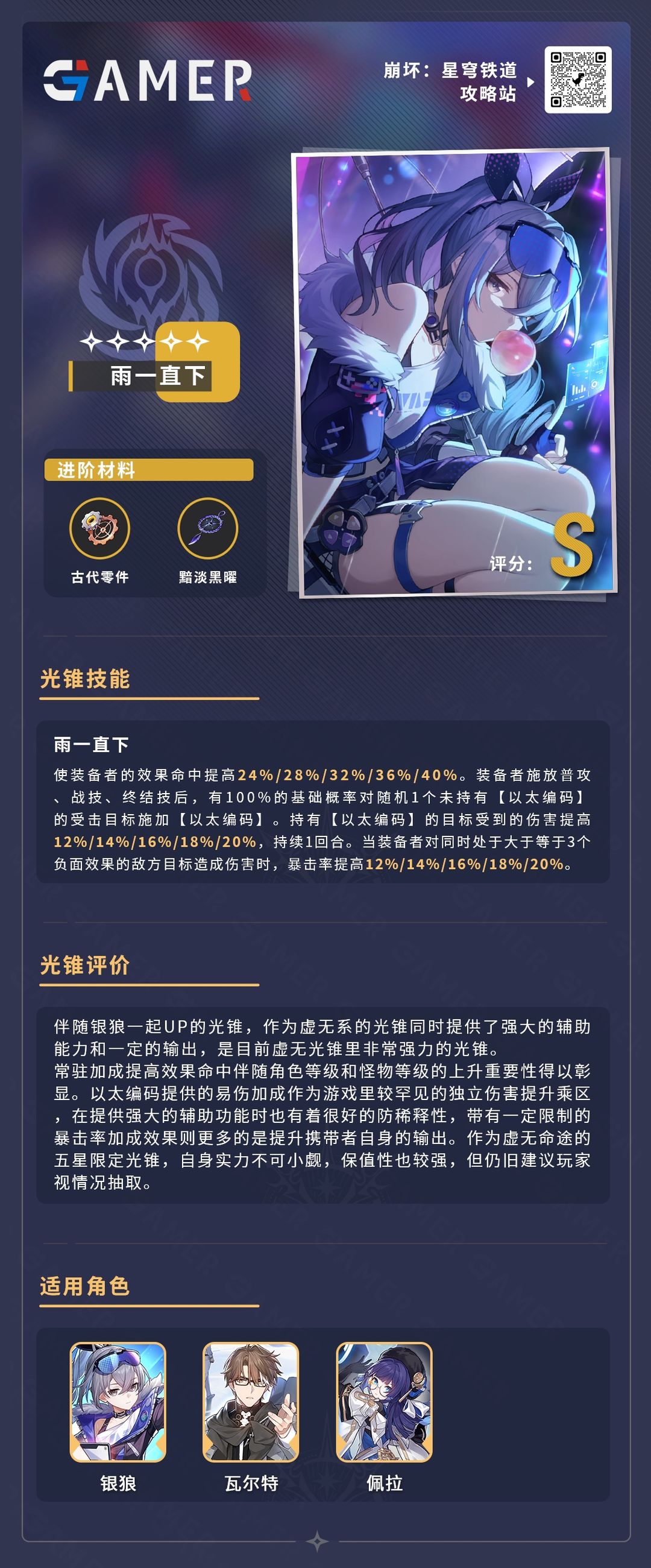 崩坏星穹铁道五星光锥雨一直下光锥的使用效果是什么,很多朋友都是非常的好奇,关于具体的效果小编给大家整理了,在游戏当中为了更好的发挥使用效果,感兴趣的朋友一起来下载看看吧~