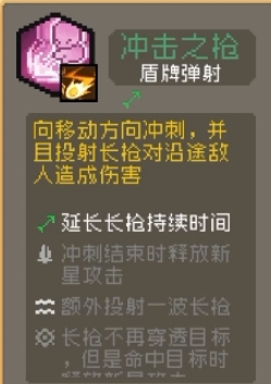 冲击之枪可以强化盾牌弹射技能,可以多一段位移,投掷长枪攻击敌人。