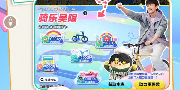 3、骑乐无限:完成任务获得道具-助力水壶,骑行里程达到一定数值后,玩家可以免费领取外观-吴大厨和动作-做菜。