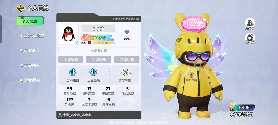 2、uid是“1473857768”,想跟大仙一起游戏的小伙伴可以试着添加好友,万一同意了,还可以上一波电视。
