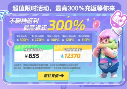 玩家的充值额度会按照一定的比例返还,最高达300%。