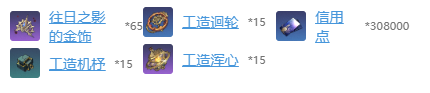 5、60级:工造浑心*6、往日之影的金饰*20、信用点*80000