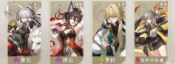 1、景元单体输出和群体输出能力都不错,属于队伍的主C,停云作为辅助,有增攻、增伤、充能效果。