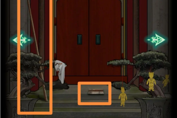 7、继续左转,用竹竿打开红盒子得到象棋-卒,然后成功摆放就能得到阴鱼。