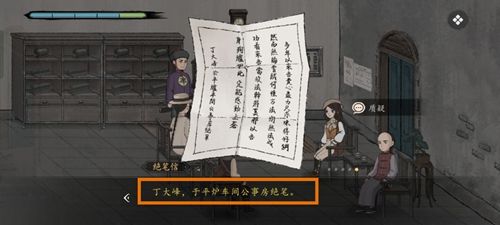 2、抵达指定的地点后与公事房的人对话交谈,剧情结束后需要出示银元。