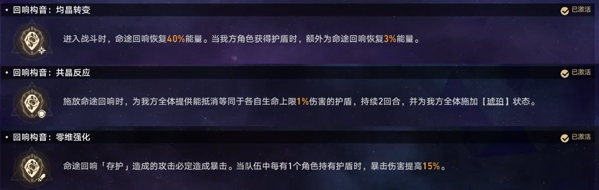 回响交错:存护的两个回响交错算是伤害补强,并没有达到激活不可的地步,实战中随缘即可。