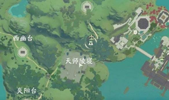 1、在地图引导下,前往天师陵寝右上方的林木区域。