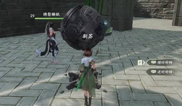 5、深入后,在左侧可发现第二个石球,请沿顺时针方向推动两圈。