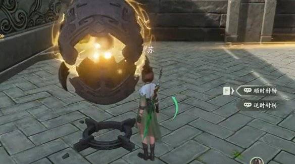 9、紧接着,对面的石球也请沿顺时针方向旋转一次。