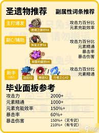圣遗物推荐宗室套。两件套能提升元素爆发伤害,四件套能让角色释放元素爆发后,队伍中所有角色攻击力提升20%,持续12秒,这对队伍输出的提升非常显著。